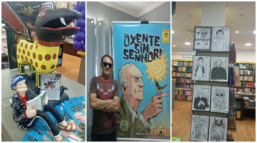 O desenhista e produtor cultural Aurélio Filho, está realizando até o dia 25 deste mês, uma exposição na Livraria Nobel, no Guedes Shopping, enfatizando personagens e histórias do escritor e filósofo brasileiro, Ariano Suassuna.