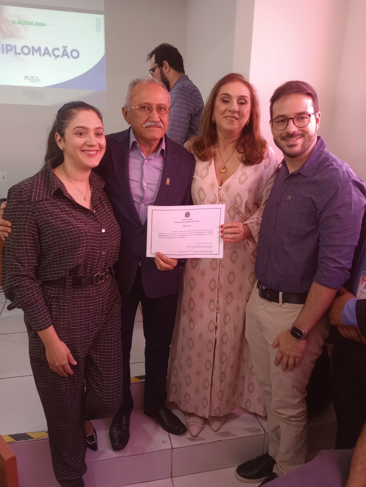 Realizada na manhã de hoje a solenidade de diplomação dos candidatos eleitos nos municípios de Teixeira, Mãe d’Água, Cacimbas, Desterro e Maturéia. O evento foi presidido pelo juiz Carlos Gustavo Guimarães e acompanhado pelo promotor Rafael de Carvalho, representante do Ministério Público.