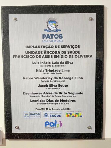 Na segunda-feira, 23 de dezembro, foi inaugurada a reforma e entrega da unidade âncora de saúde Francisco de Assis Emídio de Oliveira, localizada no sítio Enjeitado, zona rural de Patos. Com esta entrega, o município atinge a marca de quatro unidades âncora de saúde reformadas e entregues à população durante a atual gestão.