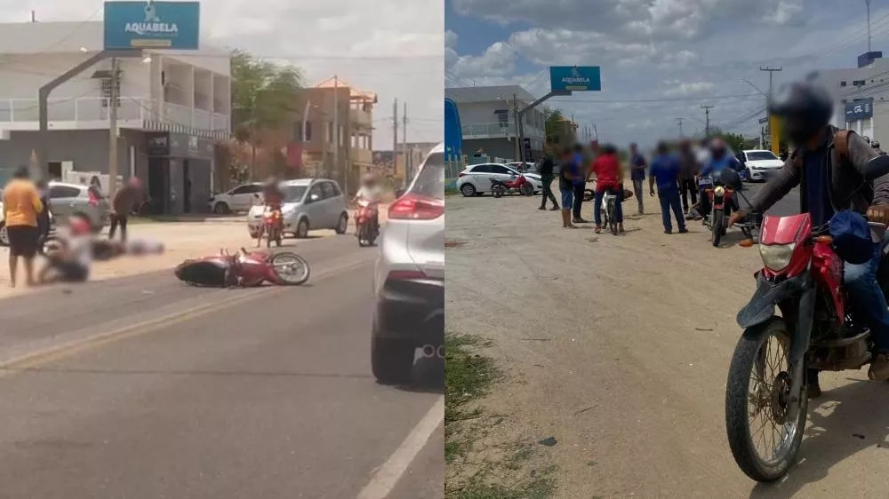 No final da manhã desta quinta-feira (9), por volta das 11h, um acidente envolvendo duas motocicletas foi registrado no quilômetro 4 da BR-361, no perímetro urbano de Patos, no bairro Bivar Olinto, próximo à oficina Duas Rodas.