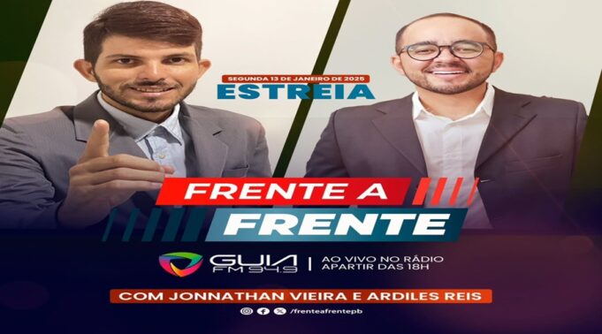 Nesta segunda-feira, a partir das 18 horas, o rádio paraibano ganhará uma nova atração com a estreia do programa Frente a Frente na Guia FM 94,9, em Teixeira, na Região Metropolitana de Patos. Sob o comando dos experientes comunicadores Jonnathan Vieira e Ardiles Reis, o programa promete trazer uma abordagem inovadora e envolvente para os ouvintes.