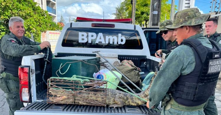 Um jacaré foi resgatado de dentro de um condomínio, na manhã deste domingo (26), no Bairro dos Estados, em João Pessoa.