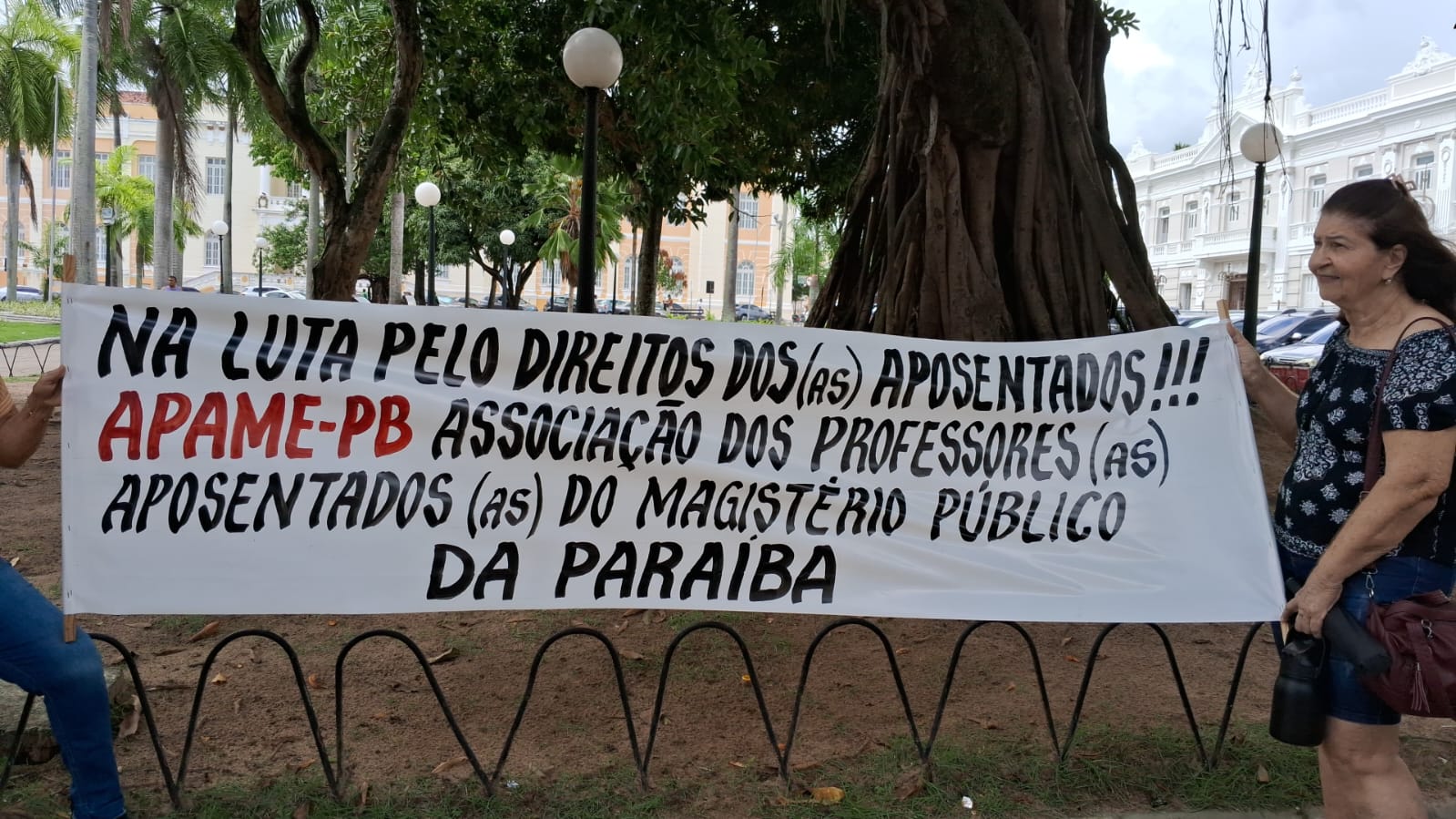 A Associação dos Professores Aposentados do Magistério Público do Estado da Paraíba (APAME) realizou, na manhã desta terça-feira (11), uma manifestação em frente à Assembleia Legislativa da Paraíba (ALPB), em João Pessoa. O ato ocorreu das 9h ao meio-dia e teve como principal objetivo reivindicar a volta da Bolsa Desempenho e o reposicionamento dos níveis salariais, benefícios que não foram contemplados no novo Plano de Cargos, Carreiras e Remuneração (PCCR).