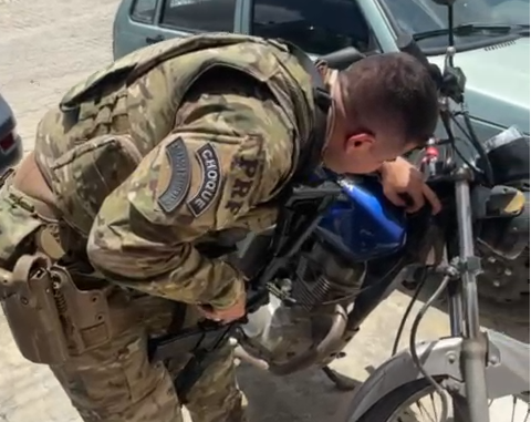 Durante operação de combate aos crimes patrimoniais e fraudes veiculares, policiais do Núcleo de Operações Especiais (NOE) da PRF visualizaram uma motocicleta estacionada próximo ao km 56, da BR-412, no município de São João do Cariri-PB, por volta das 10h30, com placa em desacordo com o padrão estabelecido pelo Conselho Nacional de Trânsito – Contran. Após procedimento de identificação veicular, foram constatados indícios de adulteração nos sinais identificadores do veículo. A motocicleta foi encaminhada à Delegacia de Polícia Judiciária para os procedimentos cabíveis. Não foi possível localizar quem estava na posse da moto.
