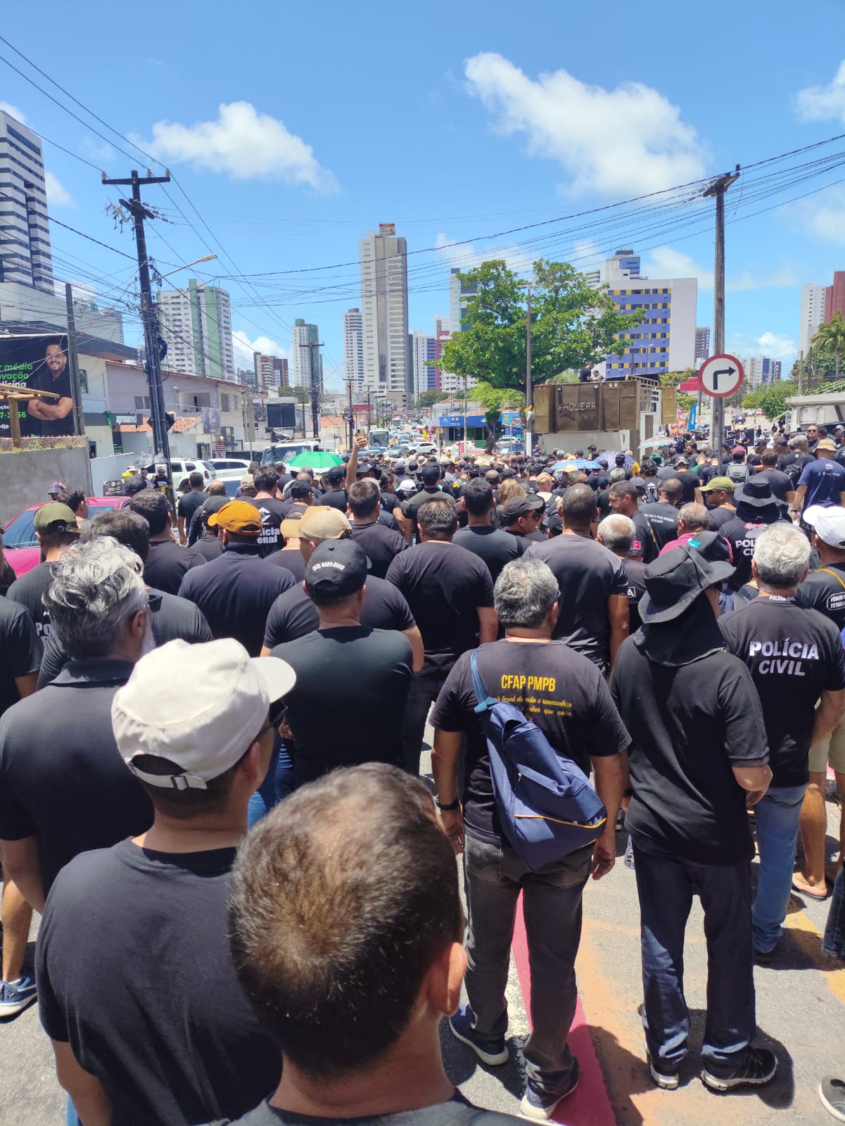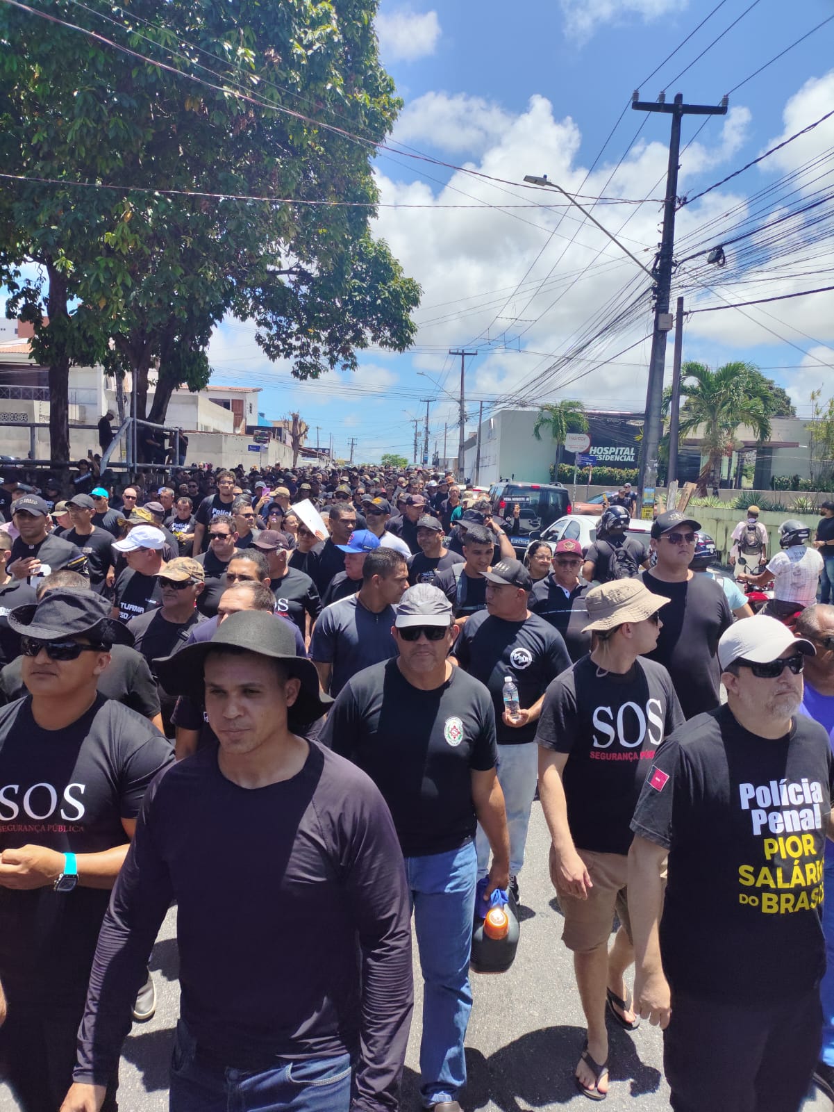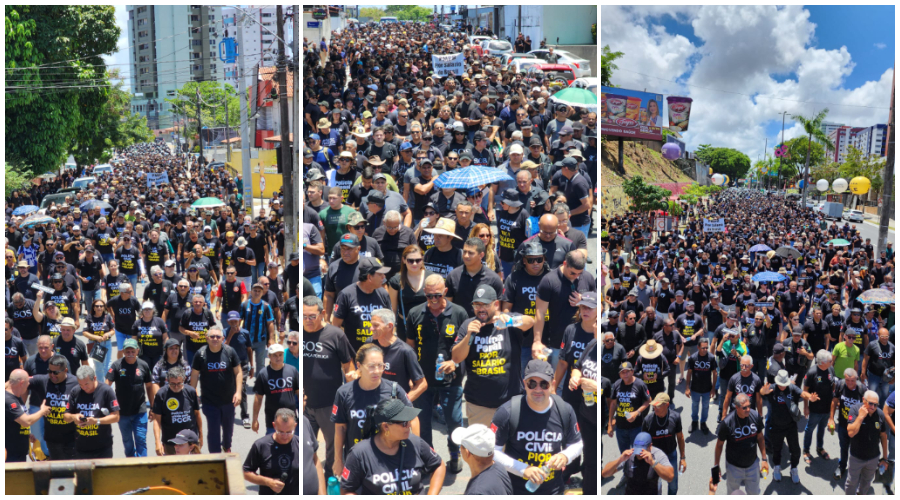 O Fórum da Segurança Pública da Paraíba faz, nesse momento, em frente à Granja Santana, residência oficial do governador da Paraíba, em João Pessoa, uma manifestação que reivindica melhorias salariais para a Polícia Militar, Polícia Civil, Polícia Penal e Bombeiros Militares. A categoria pede que o governo pague a média Nordeste e o escalonamento vertical, o que tiraria a segurança pública da Paraíba do pior salário do país.