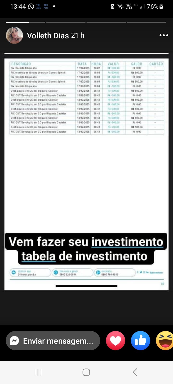 Volleth alertou que bandidos estão utilizando suas redes sociais, por meio de duas páginas no Facebook e dois perfis no Instagram, e apresentando “Pix Premiado”, além de pedirem ajuda em dinheiro com o intuito de aplicar golpes.