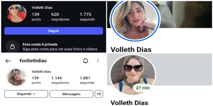 Veja abaixo os perfis falsos criados em nome de Volleth Dias. Ela alerta para que seus amigos não caiam em golpes.