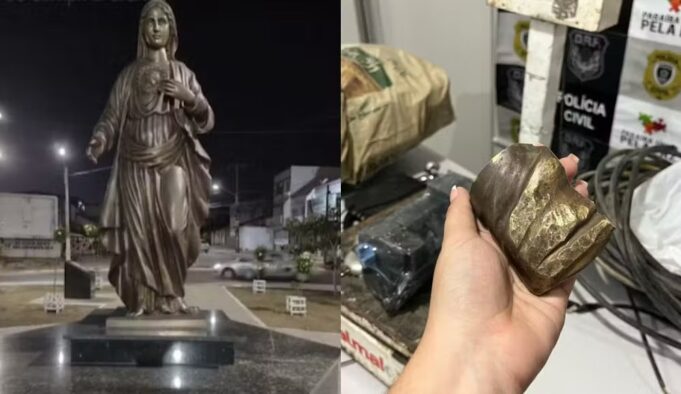 Três homens foram presos suspeitos de envolvimento no furto da imagem de uma santa no bairro do Catolé, em Campina Grande, na noite de sábado (22). De acordo com a Polícia Civil, cinco pessoas são investigadas pelo crime: dois donos de sucatas, que permaneceram presos, e três suspeitos de furto, dos quais apenas um segue preso. As autoridades ainda investigam o paradeiro da estátua de bronze do Imaculado Coração de Maria.