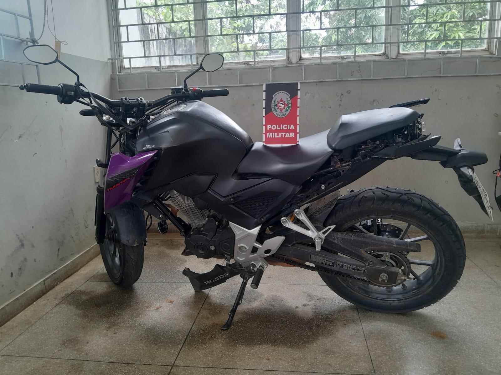 Na manhã deste sábado (01), uma guarnição da 4ª CIA/3º BPM realizava patrulhamento ostensivo na cidade de Desterro, na Região Metropolitana de Patos quando identificou uma motocicleta estacionada em frente a um bar. Durante a consulta aos registros do veículo, foi constatada uma divergência na cor cadastrada.