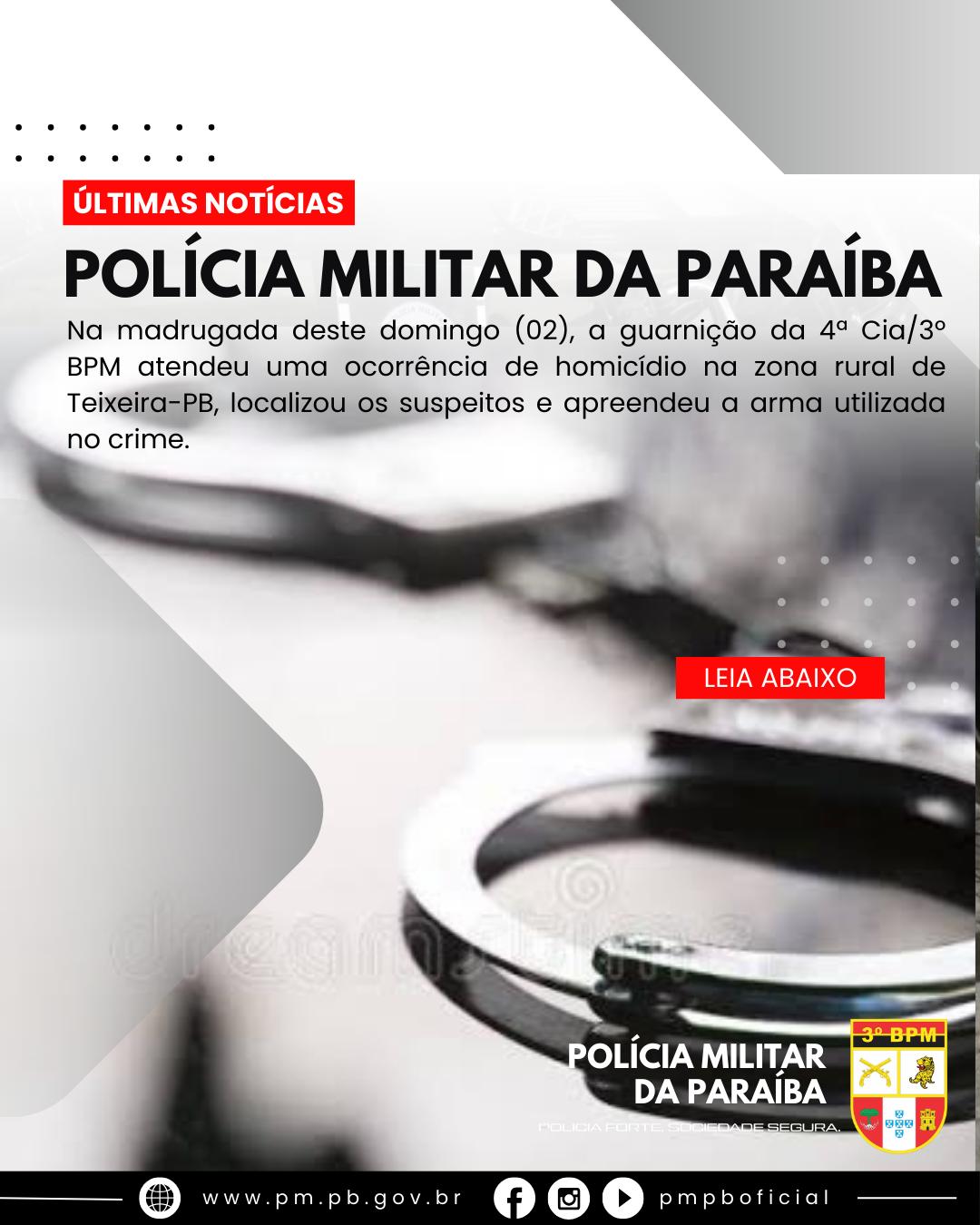 Na madrugada deste domingo (02), por volta das 3h, a guarnição da 4ª Cia/3º BPM foi acionada para atender a uma ocorrência de possível esfaqueamento em uma propriedade localizada no Sítio Riacho Verde, na zona rural de Teixeira, na Região Metropolitana de Patos.