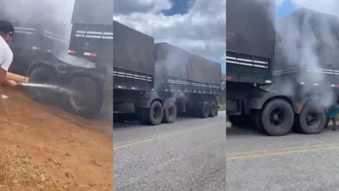De acordo com informações preliminares, o motorista percebeu fumaça saindo de um dos pneus no final da serra e agiu rapidamente, parando o veículo para evitar maiores danos. Outros condutores que passavam pela rodovia ofereceram ajuda e, em conjunto, buscaram água em uma residência próxima para controlar as chamas. O proprietário da casa cedeu uma mangueira, permitindo que o fogo fosse extinto antes que se espalhasse.