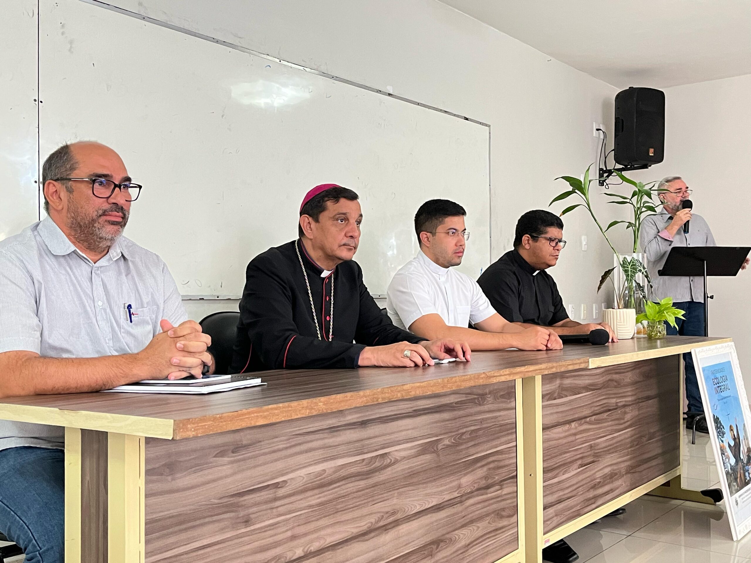 A mesa de honra foi composta pelo Bispo diocesano de Patos, Dom Eraldo Bispo da Silva, pelos padres José Adalberto dos Santos e José Elielton Lopes, coordenadores diocesanos de Campanhas, e pelo secretário municipal de Meio Ambiente de Patos, Jailson Lopes da Penha. Durante a coletiva, foram discutidos os desafios socioambientais da atualidade e a importância do compromisso cristão com o cuidado da Casa Comum.