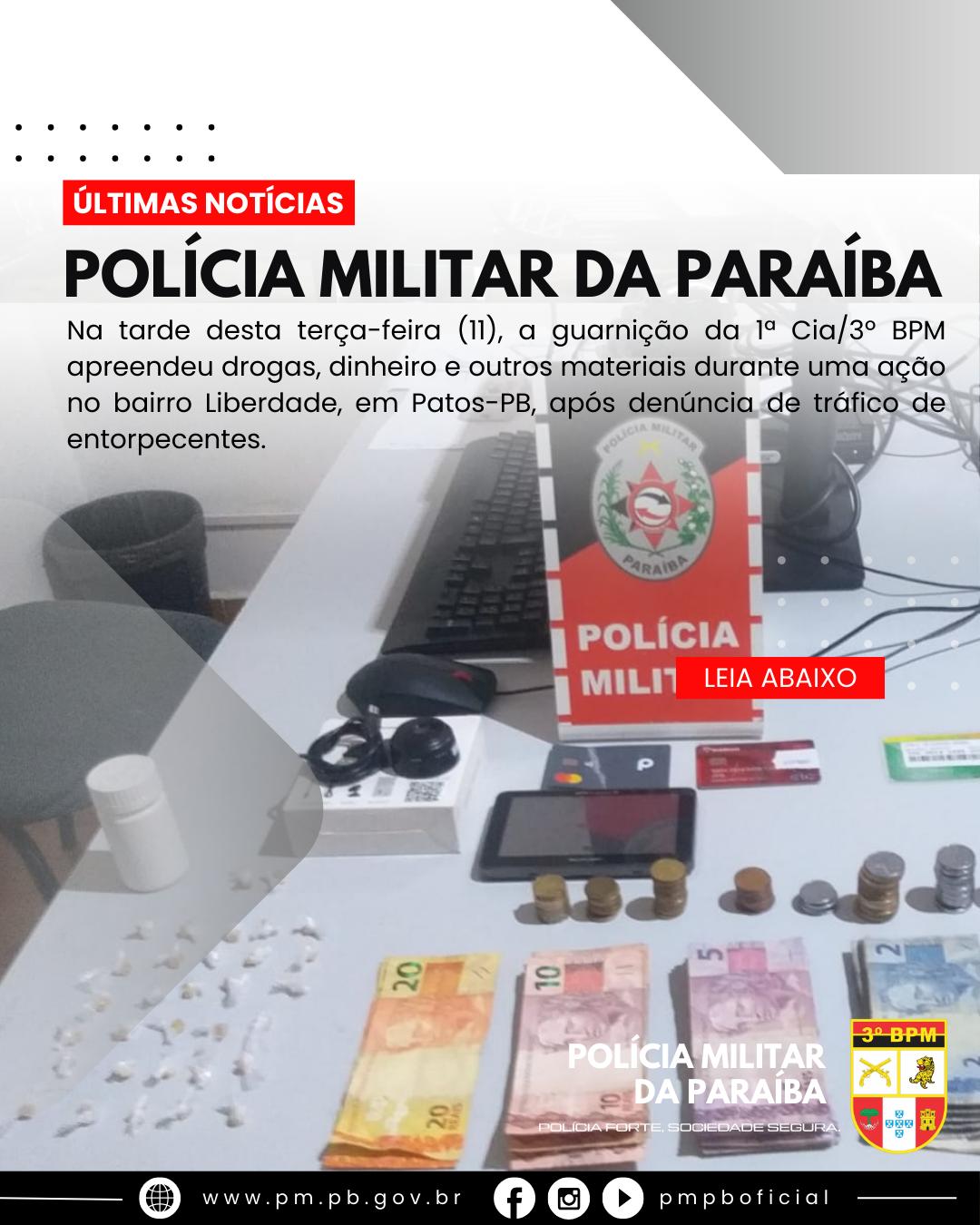 Na tarde desta terça-feira (11), a guarnição da 1ª Cia/3ºBPM realizou uma apreensão de entorpecentes durante patrulhamento ostensivo no bairro Liberdade, em Patos. A ação ocorreu por volta das 16h30, após a guarnição de radiopatrulha receber uma denúncia sobre movimentação suspeita em um “beco” conhecido na localidade.