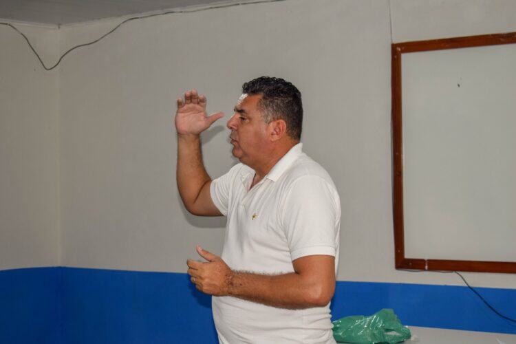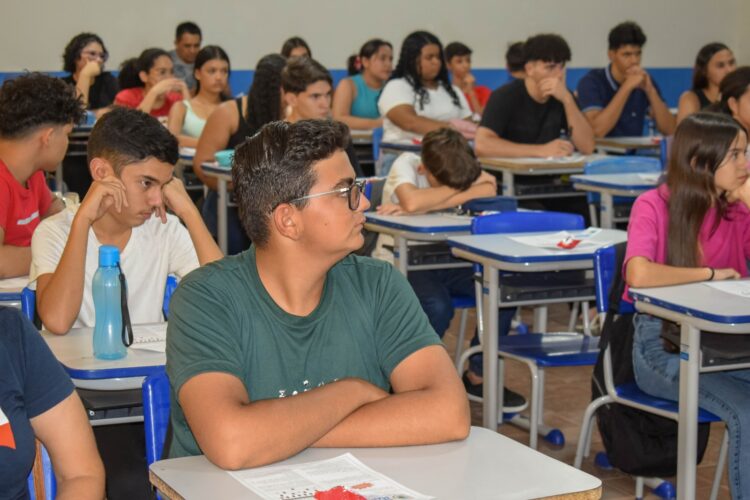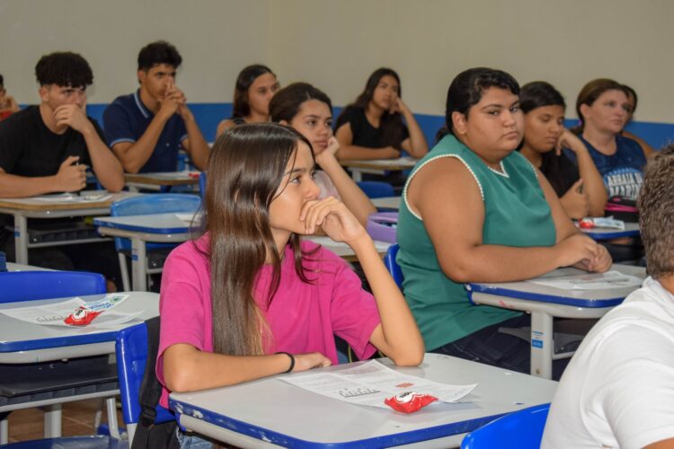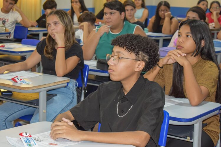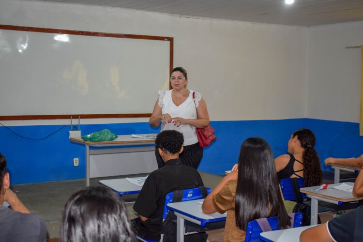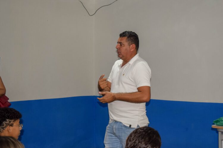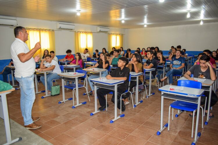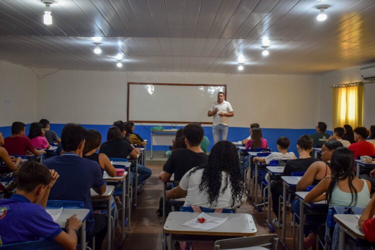 Essa ação ocorreu na Escola Marina Gouveia com o professor João Henrique Candeia, que deu início às aulas nas turmas do 9º ano.