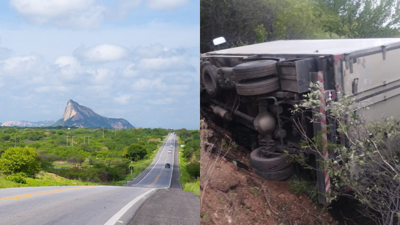Um caminhão de carga capotou, no início da tarde desta segunda-feira (17), na Serra de Santa Luzia, na Região Metropolitana de Patos. Ninguém ficou ferido.