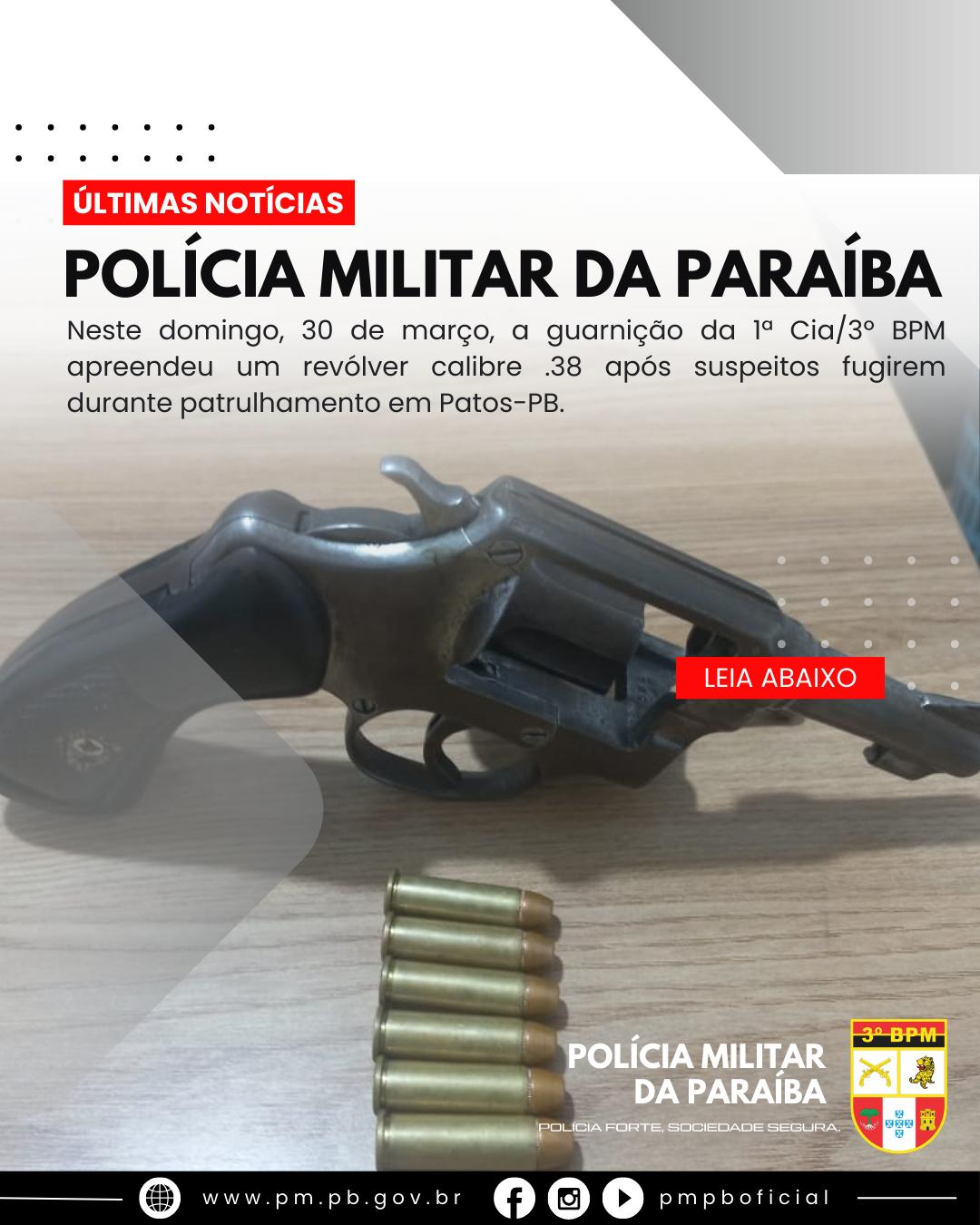 Os policiais iniciaram a perseguição, mas não conseguiram alcançá-los. Durante buscas na área, a guarnição localizou um revólver calibre .38, de marca não identificada, municiado com seis cartuchos intactos, que havia sido descartado pelos suspeitos. A arma apreendida foi encaminhada à Delegacia de Polícia Civil para as devidas providências.
