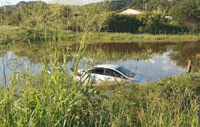 Um carro caiu em um lago e ficou parcialmente submerso nesta segunda-feira (14) próximo à cidade de Itaporanga, no Vale do Piancó.