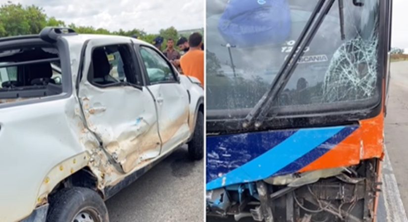 Conforme relato da Polícia Rodoviária Federal (PRF), uma pessoa que seguia em um dos veículos menores ficou ferida. No ônibus, os passageiros ficaram ilesos.