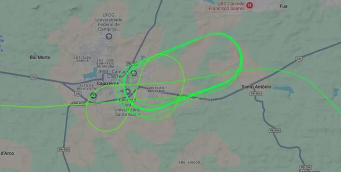 Moradores registraram, na manhã desta terça-feira (22), imagens de um avião da empresa Azul Linhas Aéreas sobrevoando Cajazeiras, aparentando dificuldade para pousar no aeroporto.