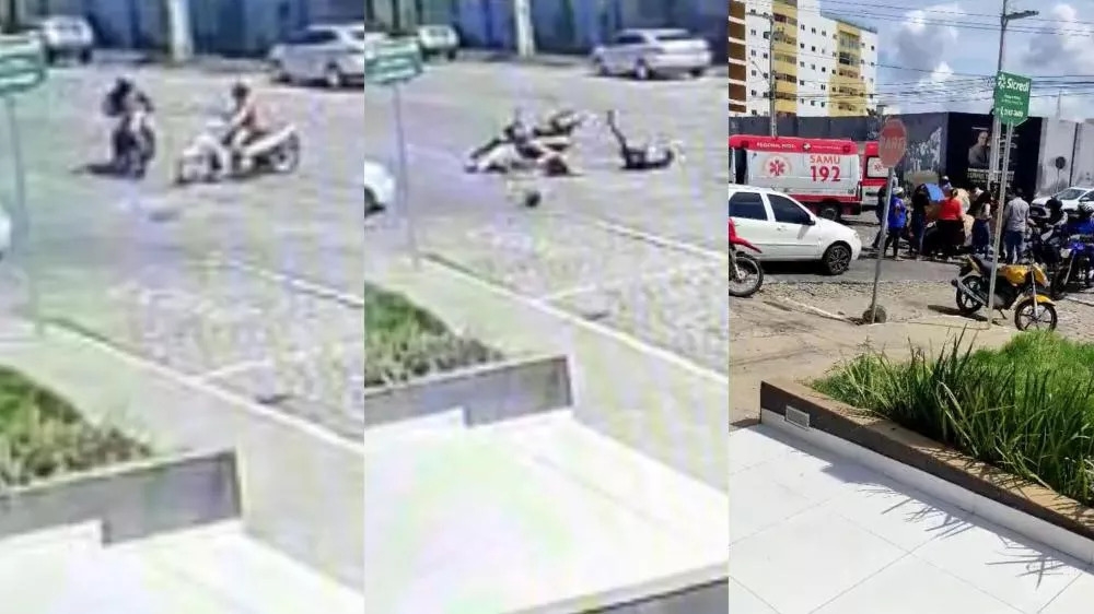 Imagens de câmeras de segurança do restaurante, obtidas pelo Patos Online, mostram que a motociclista seguia pela Rua João Soares e não respeitou a sinalização de “PARE”, avançando o cruzamento. Nesse momento, foi atingida por outra moto que transitava pela Rua Presidente Floriano Peixoto. A colisão foi forte o suficiente para arremessar ambos os condutores ao chão. O capacete da mulher se soltou no impacto, enquanto o outro motociclista conseguiu se levantar logo após a queda.