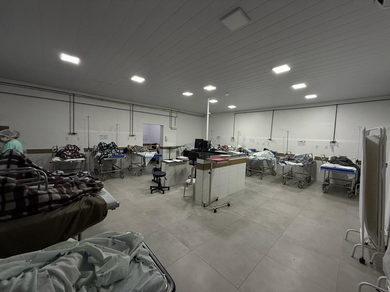 Dos 16 procedimentos cirúrgicos realizados, 13 foram de urgência e três eletivos. A maior parte das cirurgias foi ortopédica com oito casos, seguidas de cirurgias gerais com quatro registros, além de dois procedimentos oncológicos e mais dois vasculares.