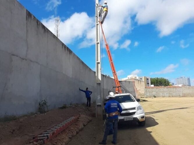 No campo da iluminação pública, a equipe técnica realizou a instalação de refletores nos postes do Terreiro do Forró, reforçando a iluminação do espaço que é palco de eventos culturais, como o São João 2025 que acontece de 19 e 23 de junho.