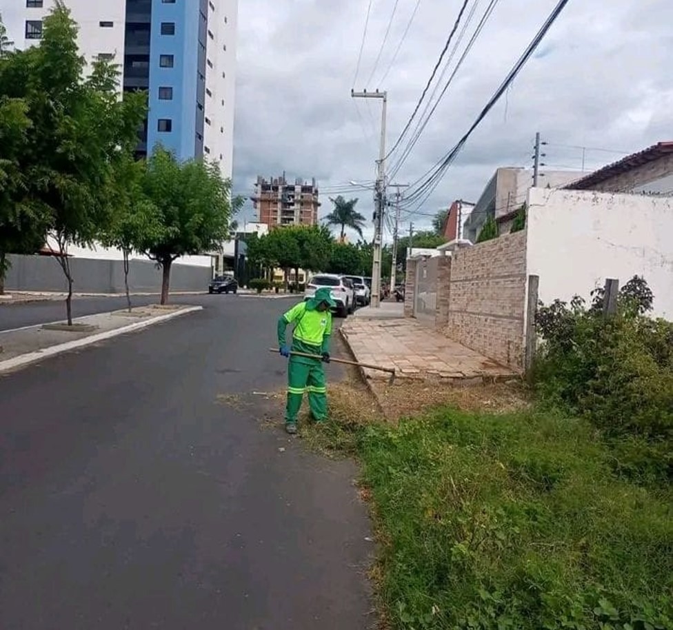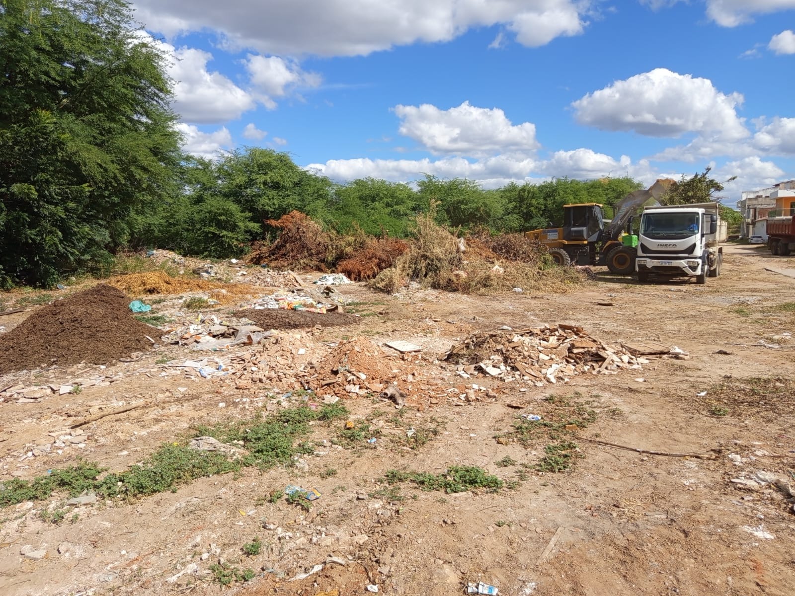 A limpeza urbana também esteve em evidência com ações nas margens da BR-110, no sentido Cruz da Menina, além de serviços de varrição e capinação realizados em ruas do bairro Brasília.