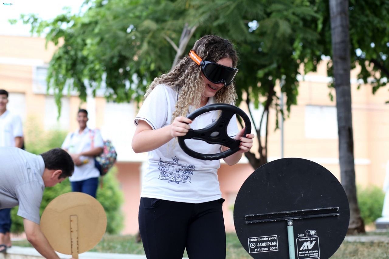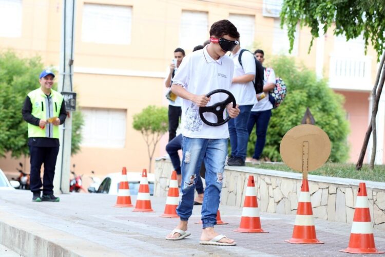 Durante a ação, os jovens participaram de um treino prático utilizando óculos que simulam os efeitos da embriaguez, como a perda de noção de espaço e equilíbrio — sensações que comprometem a capacidade de dirigir e estão entre as principais causas de acidentes graves e fatais no trânsito.