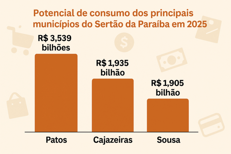A presença de Patos entre as maiores potências de consumo da Paraíba reforça seu protagonismo no Sertão e sua crescente influência econômica no estado. Com R$ 3,539 bilhões, a cidade está apenas R$ 50 milhões atrás de Santa Rita, 3ª colocada no ranking estadual. No Sertão, Patos lidera com ampla folga, ficando mais de R$ 1,6 bilhão à frente de Cajazeiras (R$ 1,935 bilhão) e Sousa (R$ 1,905 bilhão), que aparecem na 7ª e 8ª posições, respectivamente. A diferença reafirma o papel de Patos como o principal polo de consumo e desenvolvimento econômico da região sertaneja da Paraíba.