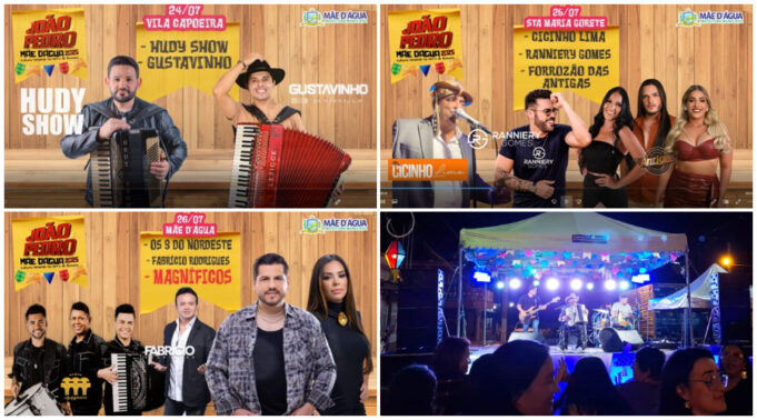 Dia 24 de julho, na Vila Capoeira: Hudy Show e Gustavinho; 25 de julho no distrito de Santa Maria Gorete: Cicinho Lima, Ranniery Gomes e Forrozão das Antigas; dia 26 de julho na Cidade de Mãe d’Água: Os 3 do Nordeste, Fabrício Rodrigues e Magníficos.