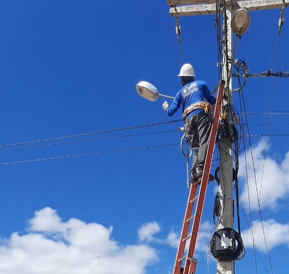 A equipe de iluminação pública também esteve em campo realizando manutenção e reposição de lâmpadas em diversas vias da cidade, incluindo: