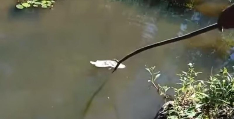 “Os peixes estão morrendo por causa da poluição. Todo esgoto cai dentro dessa água”, disse o cinegrafista amador revoltado.