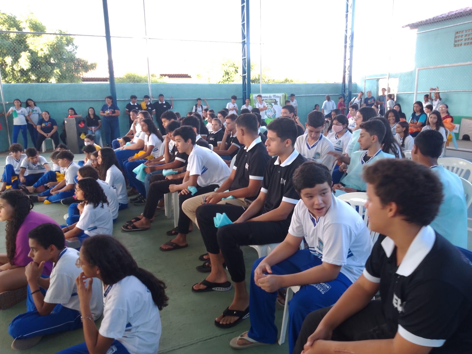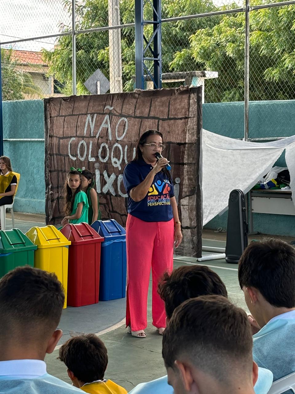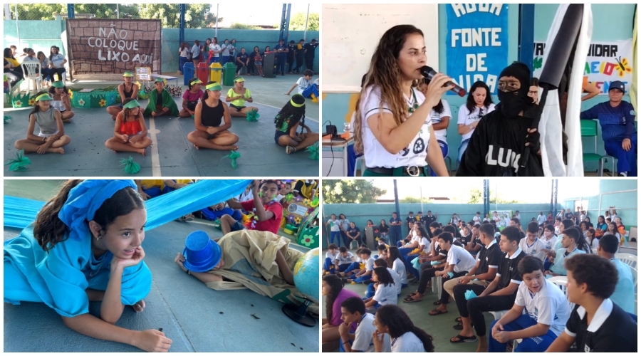 Na ocasião, diversas atividades em prol do meio ambiente foram realizadas com a participação dos estudantes, que atuaram como protagonistas no desenvolvimento de encenações teatrais, danças, paródias e confecção de cartazes. Contamos com a presença e o apoio das gestoras Joana Mércia Vieira e Eliane Trindade, de professores, da coordenadora dos Anos Finais Maria das Lágrimas Minervino, além de representantes da sociedade e da comunidade, como a ASCAPE (Associação dos Catadores de Materiais Recicláveis de Patos), o NEA e a SEMAS.
