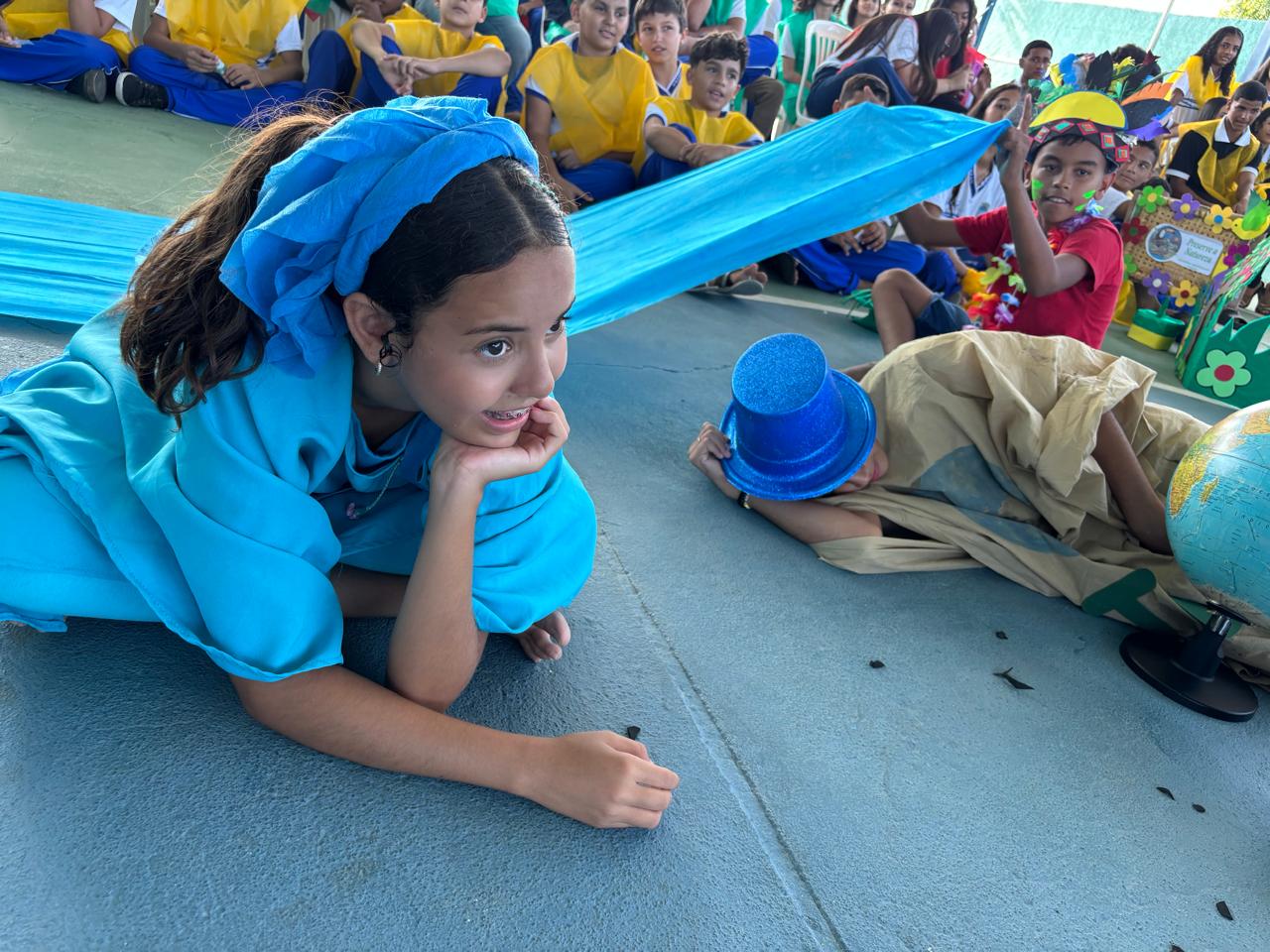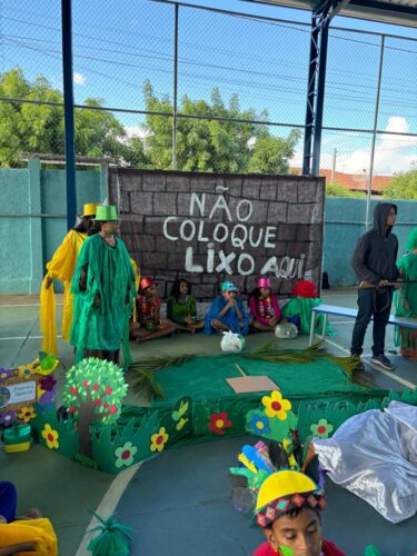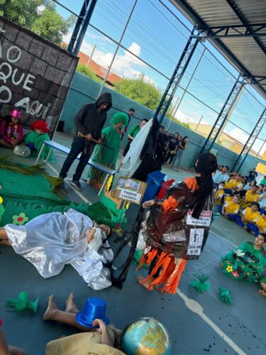 A encenação teatral “A culpa é dele!”, coordenada pela diretora teatral Sandra Nascimento, foi um dos destaques do evento. Os atores — estudantes das séries finais do Ensino Fundamental — atuaram com excelente desempenho em cena, de forma realista e convincente. Destacou-se o estudante Henzo Gabriel da Silva Noberto (6ºB), que interpretou a personagem “Poluição” e impressionou a plateia.