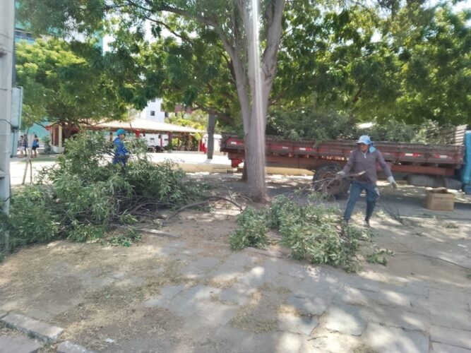 Na zona urbana, as intervenções foram variadas e atenderam diferentes bairros da cidade. No Terreiro do Forró, houve a retirada de podas de árvores no Coreto I, contribuindo para a conservação e limpeza do espaço público.