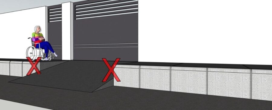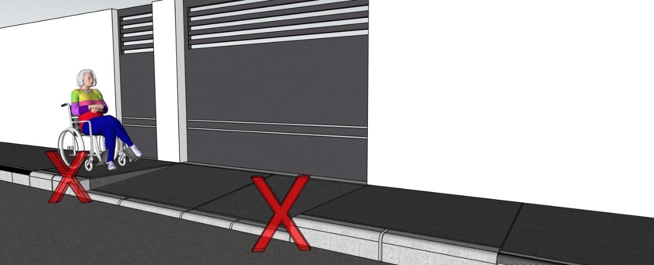 As rampas podem avançar no máximo 40 cm na rua, mas precisam ter calha ou tubulação para escoar a água da chuva.