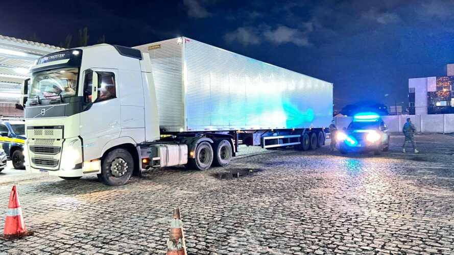 Uma equipe do Núcleo de Operações Especiais (NOE) da PRF realizava patrulhamento na rodovia quando percebeu uma carreta transitando de forma irregular, em zigue-zague pela pista. A atitude chamou a atenção dos policiais, que decidiram realizar a abordagem.