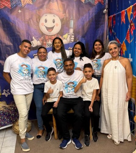 O grupo acompanhou o Zé Gotinha na visita ao ponto de vacinação instalado na sede do Sindicato Rural, nas proximidades do Terreirinho do Forró. O personagem interagiu com o público, especialmente crianças, e percorreu o espaço reforçando mensagens sobre a importância da vacinação em dia.