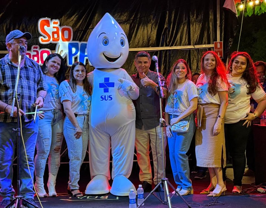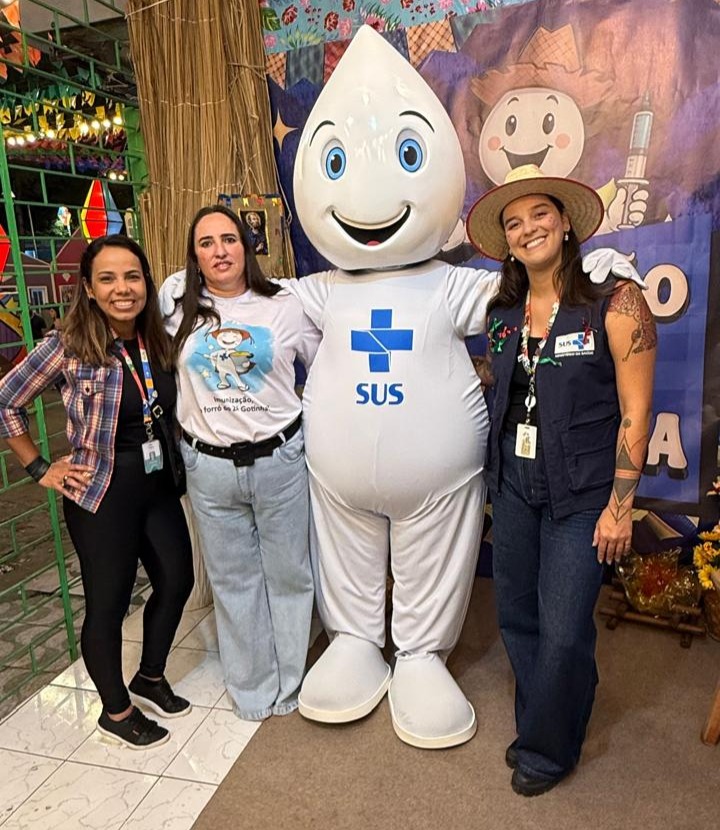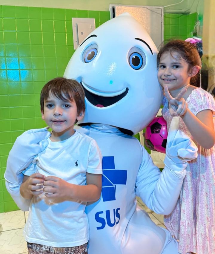 O grupo acompanhou o Zé Gotinha na visita ao ponto de vacinação instalado na sede do Sindicato Rural, nas proximidades do Terreirinho do Forró. O personagem interagiu com o público, especialmente crianças, e percorreu o espaço reforçando mensagens sobre a importância da vacinação em dia.