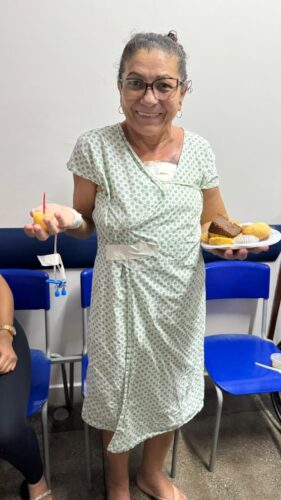 Para a paciente Marinalva Teles dos Santos, moradora do município de Desterro, a comemoração foi uma surpresa que a emocionou. “Foi tudo muito bom para animar todos nós. Gostei muito. A gente pensa que num hospital não vai se alegrar, mas hoje foi diferente e muito bom”, relatou Marinalva, elogiando não apenas a comemoração surpresa, mas também o atendimento da unidade. “Aqui, todos nos tratam muito bem”, reiterou ela que não fez seu tratamento no Hospital do Bem, mas precisou ser internada na unidade para acompanhamento e exames.