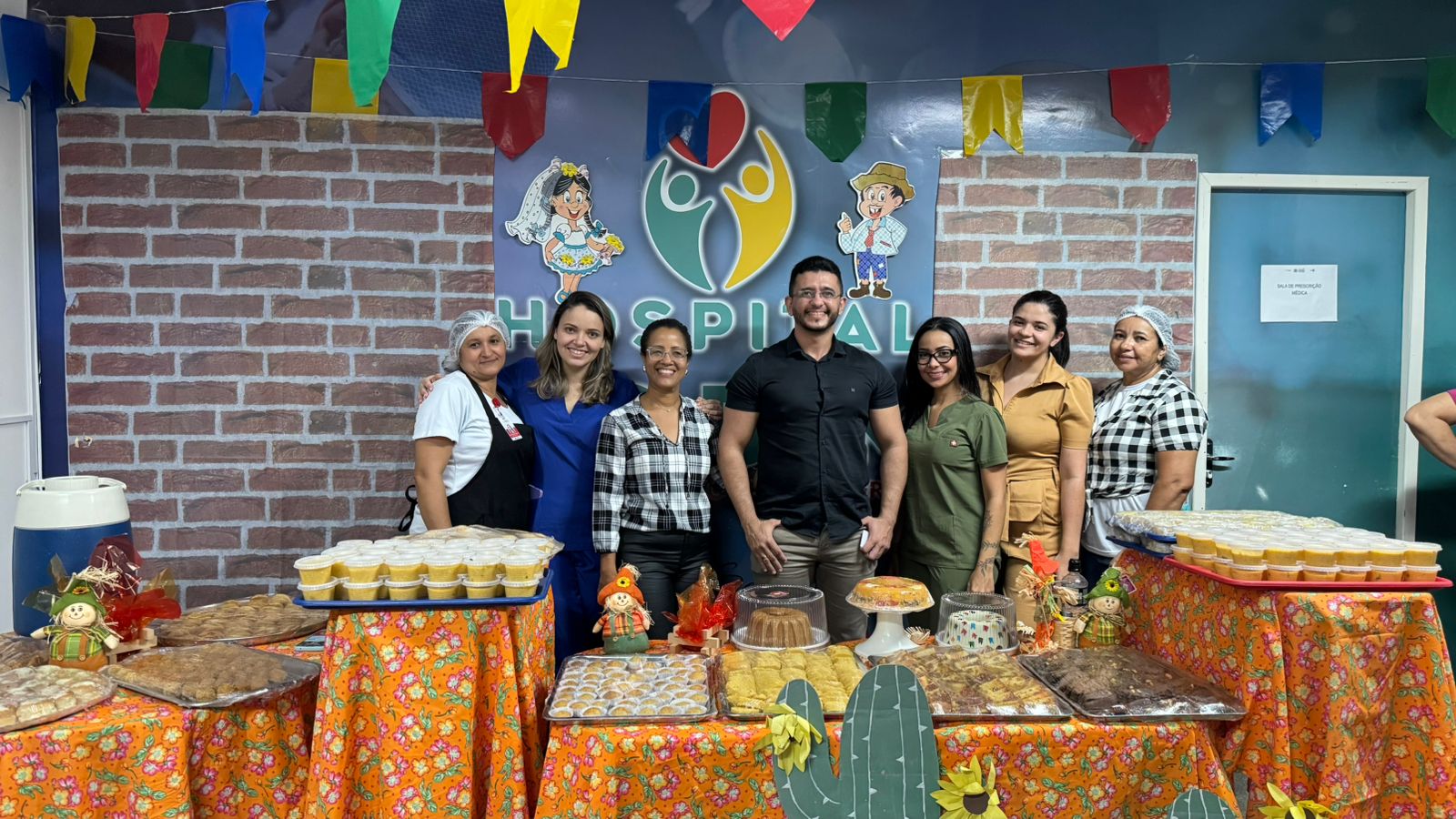 Além dos pacientes, os acompanhantes e profissionais que estavam de serviço puderam degustar das delícias da culinária junina e comemorar o São João mesmo estando em um hospital.