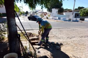 No bairro Jardim Queiroz, está sendo realizada a limpeza do Canal da Palmeira, medida essencial para evitar alagamentos e garantir a fluidez das águas pluviais. Já no bairro Maternidade, a equipe atua na retirada de entulhos na Rua Otílio de Sousa, nas proximidades da Escola Municipal Aristides Hamad Timene.