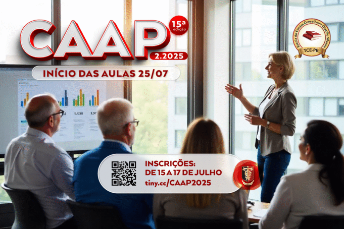 Começa nesta terça-feira (15/07) o prazo de inscrições para a 15ª Edição do Curso de Aperfeiçoamento em Administração Pública – CAAP-2025, promovido pela Escola de Contas do Tribunal de Contas do Estado (Ecosil). Os interessados deverão se inscrever pelo sistema Doity, no portal do TCE, encaminhando os documentos previstos no edital pelo e-mail ecosil@tce.pb.gov.br, entre os dias 15 de julho e 17 de julho do corrente.