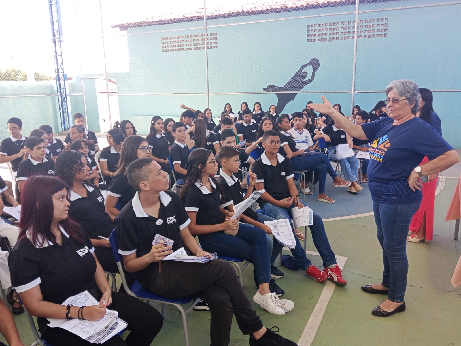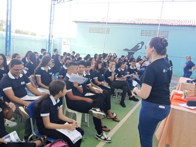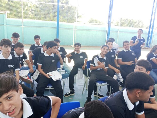 Com cerca de 150 estudantes participantes, o aulão foi marcado por um ambiente acolhedor, o que contribuiu para a atenção e o envolvimento dos alunos nas atividades propostas, tanto individuais quanto em grupo. Em seguida, houve um lanche coletivo, momento de descontração, sorteio de brindes e retomada das atividades.