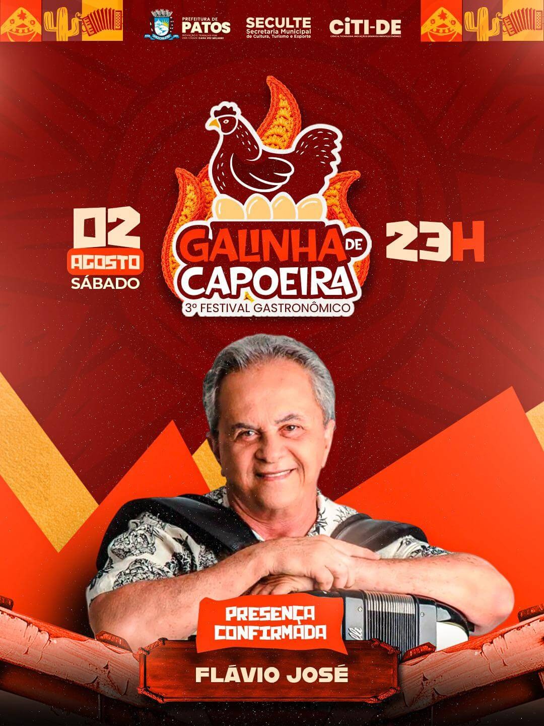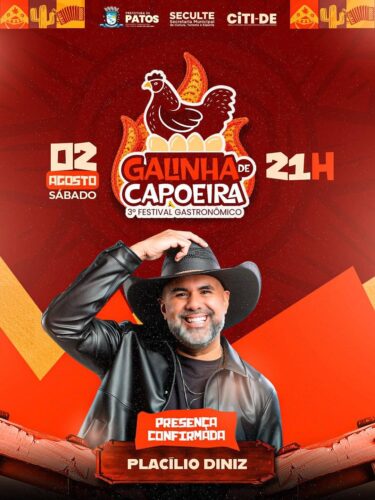 Nos últimos dias, pelas redes sociais oficiais, a Prefeitura de Patos divulgou os horários das atrações que vão animar a terceira edição do Festival da Galinha de Capoeira, que será realizado no distrito de Santa Gertrudes.