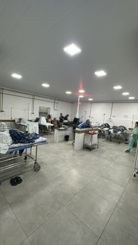 Das 41 cirurgias realizadas, 14 foram de urgência e 27 eletivas. Foram 26 procedimentos oncológicos, oito ortopédicos, quatro vasculares e três cirurgias gerais. Entre a sexta-feira (18) e o domingo (20), o hospital atendeu na urgência e emergência 302 pessoas, sendo 117 no dia 18, mais 105 no sábado e outras 80 no domingo. Neste período, 71 pessoas precisaram ficar hospitalizadas para cuidados posteriores à assistência emergencial.
