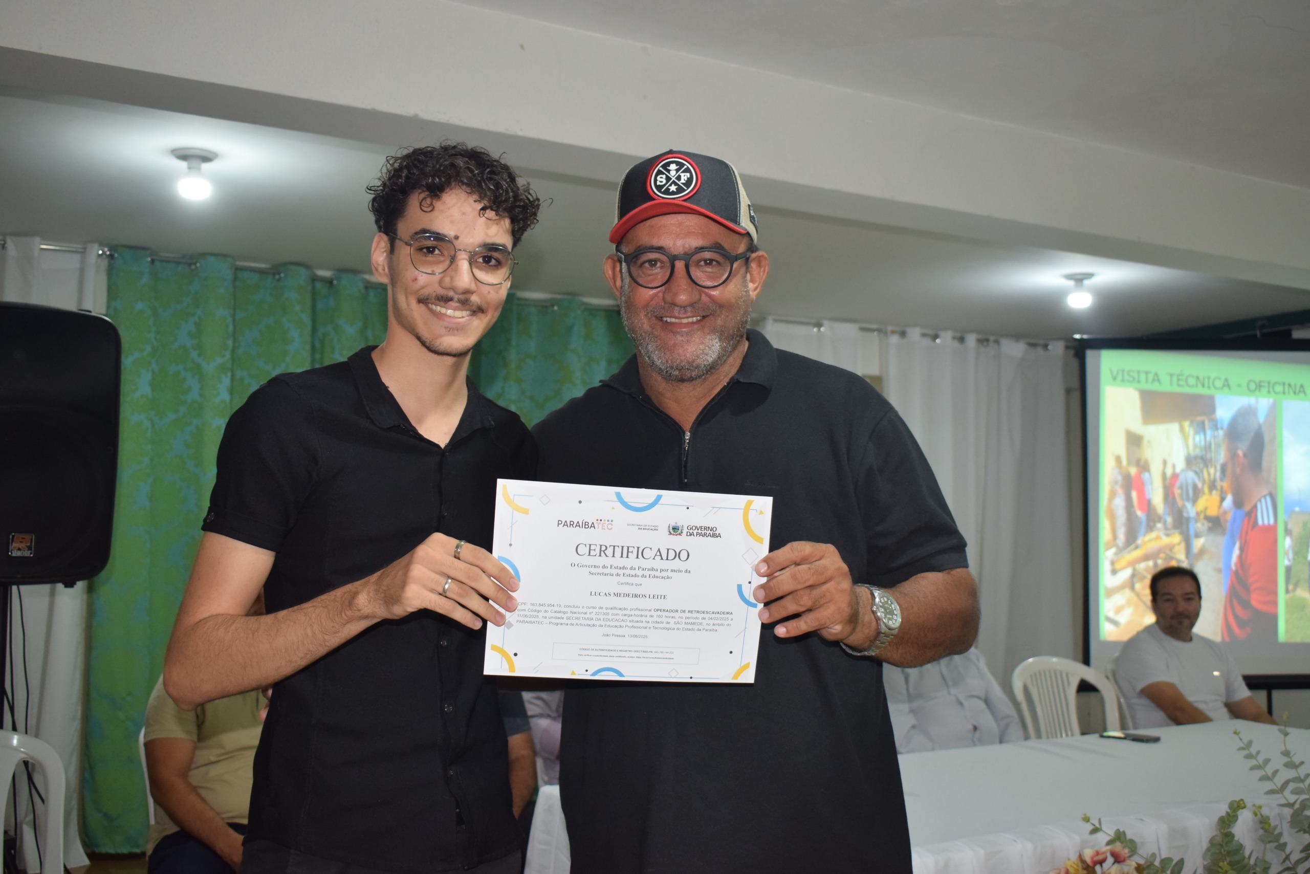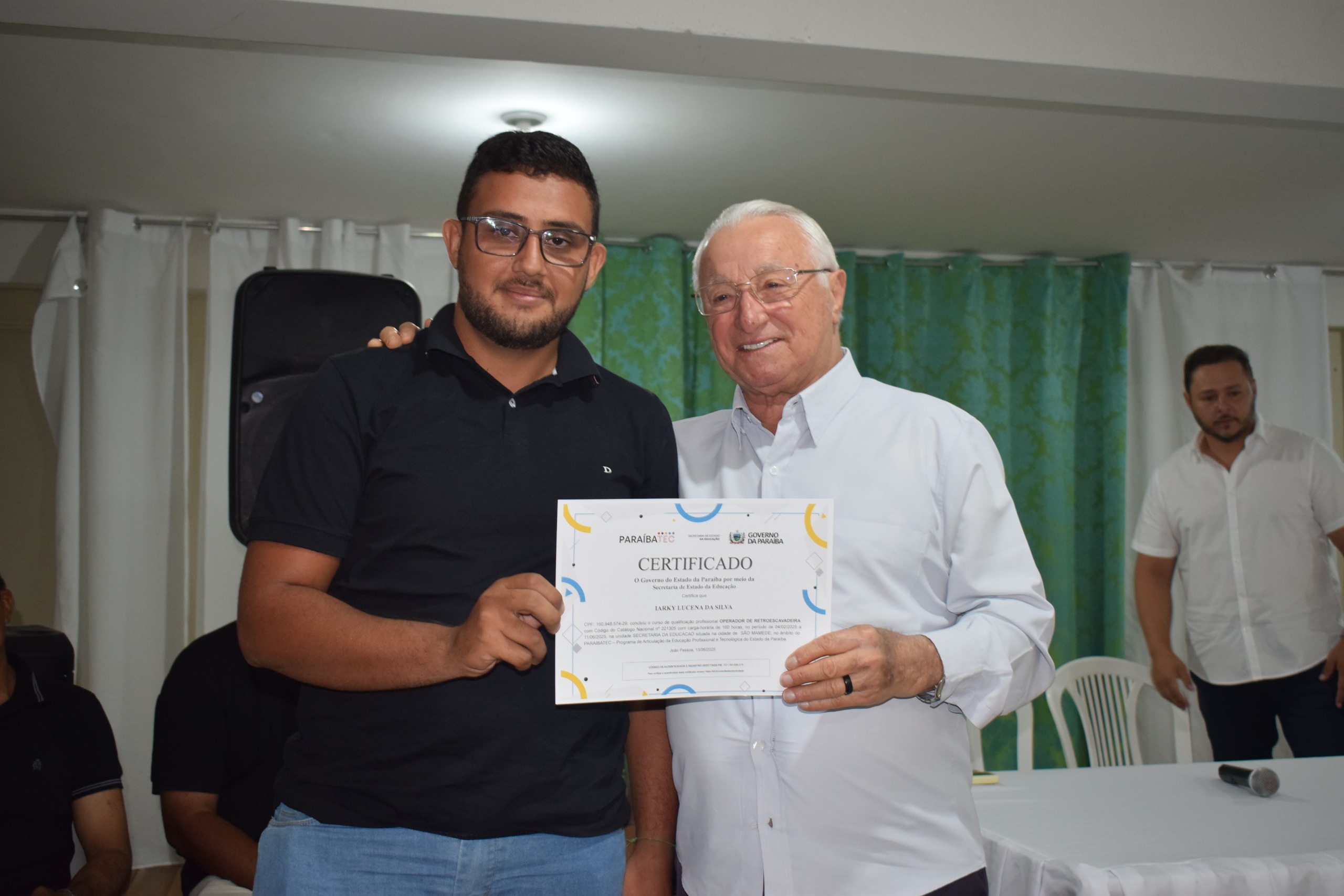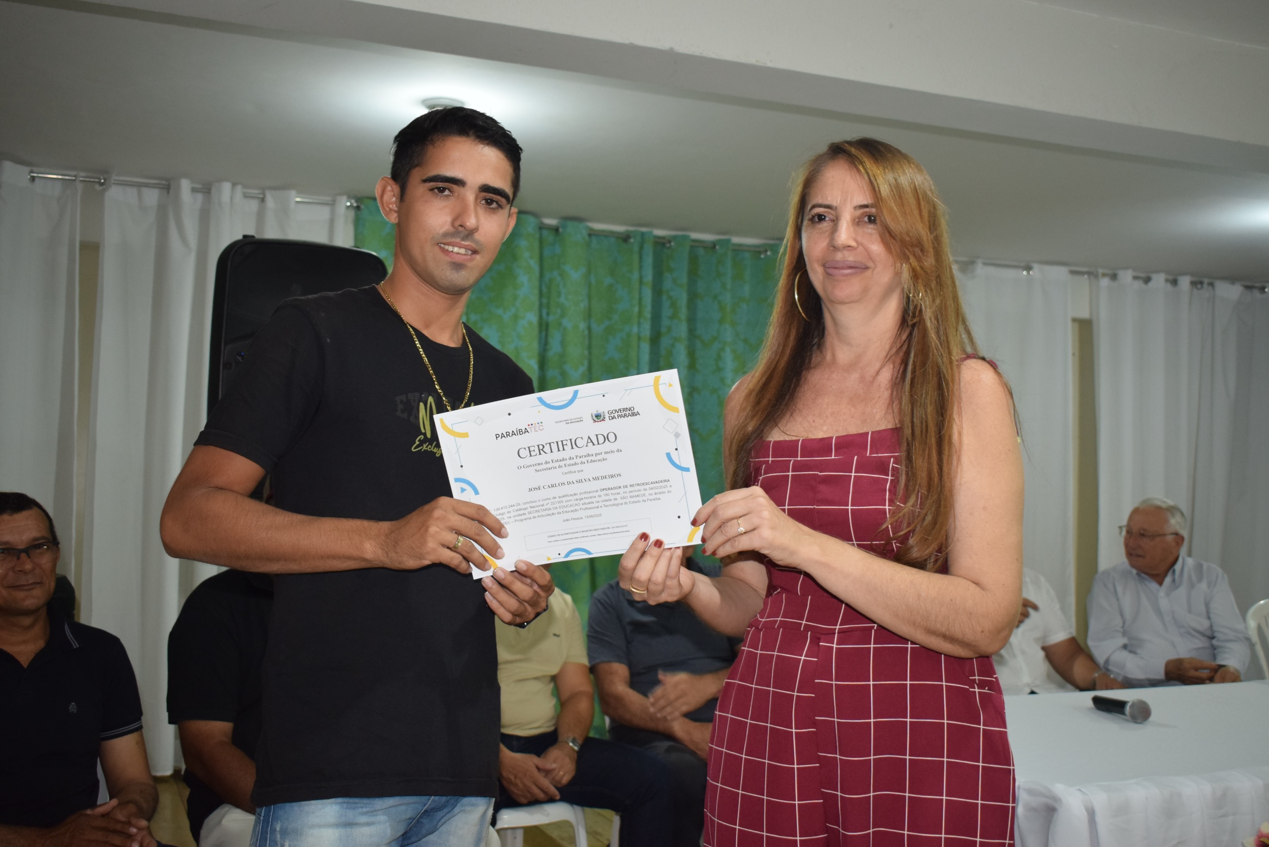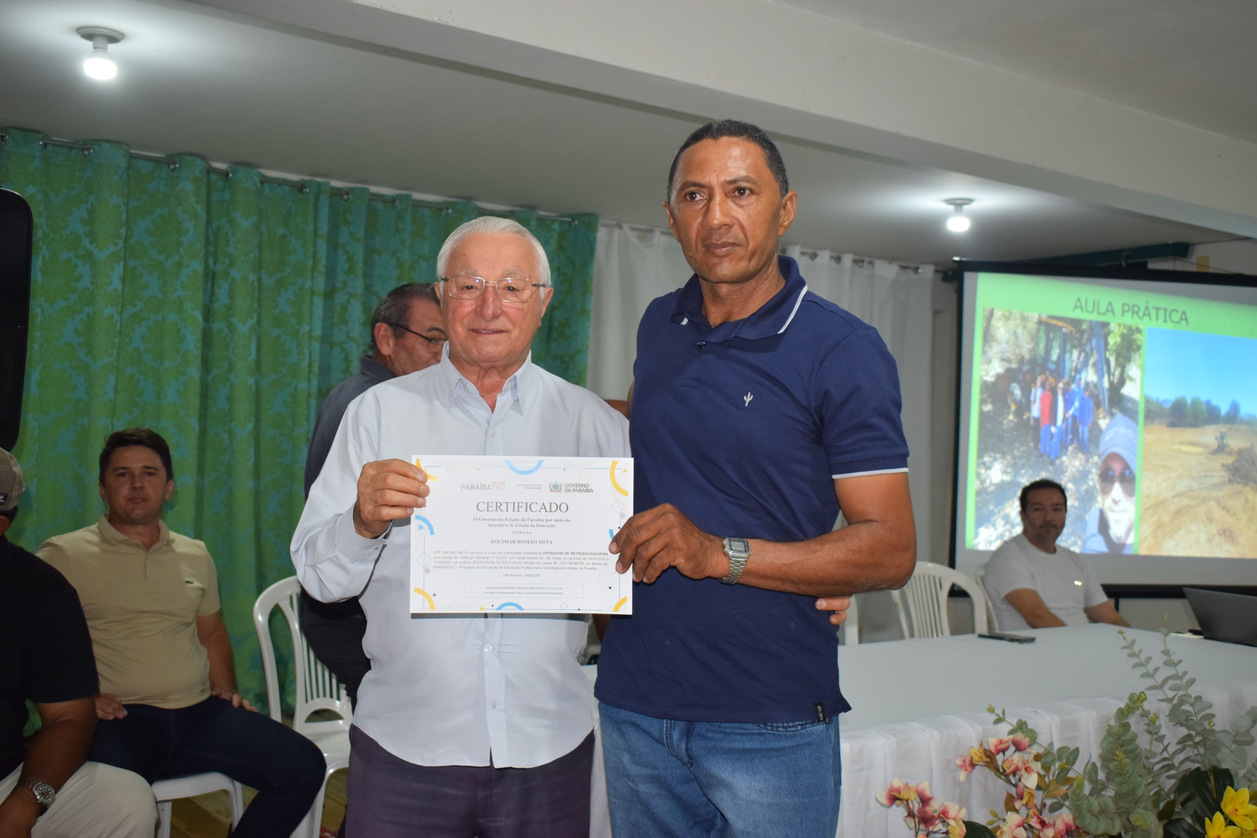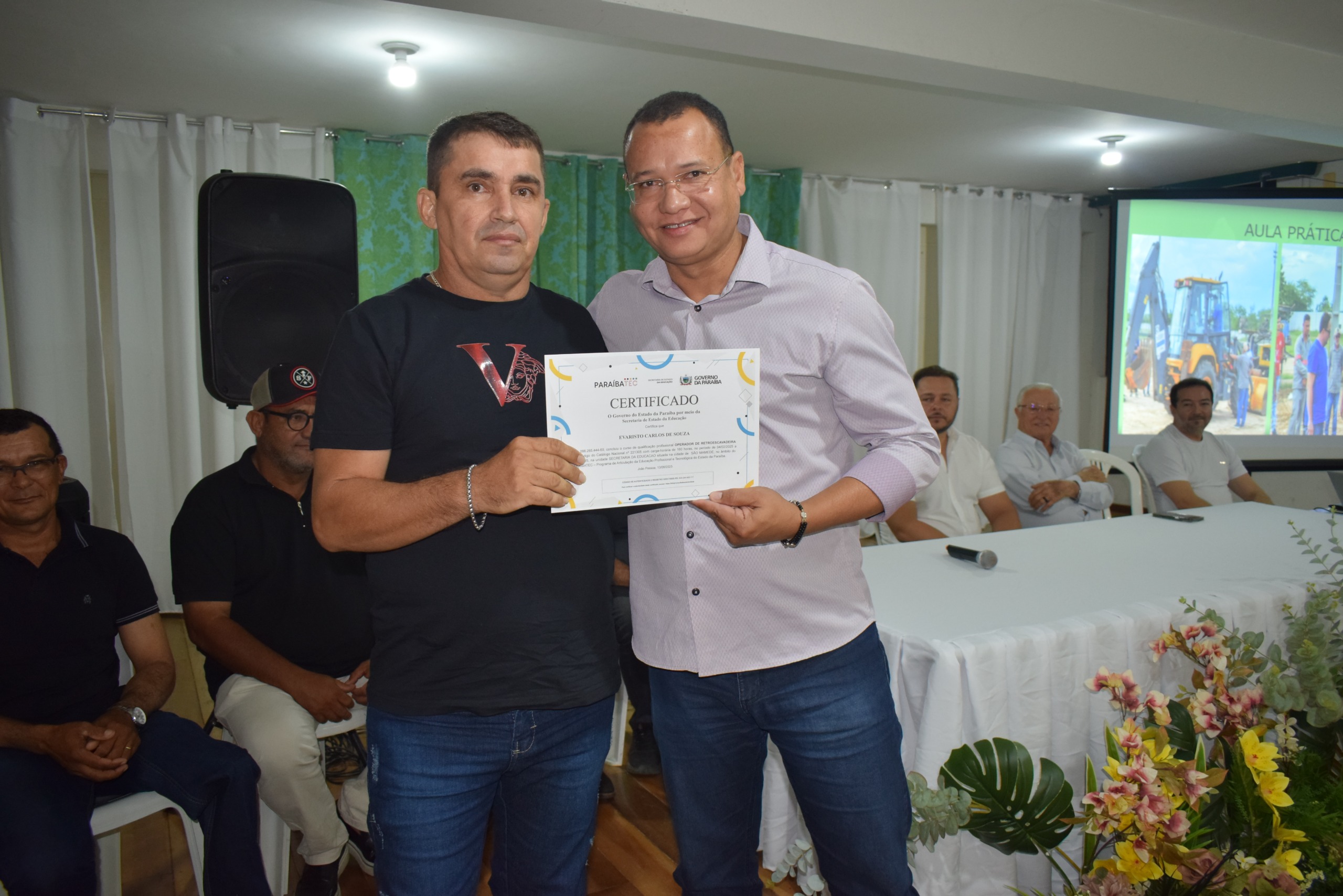 A solenidade de entrega de certificados aos formandos do curso de Operador de Retroescavadeira, ministrado pelo Paraibatec, ocorreu na noite de ontem, quinta-feira (24), no auditório da Secretaria de Educação do município.