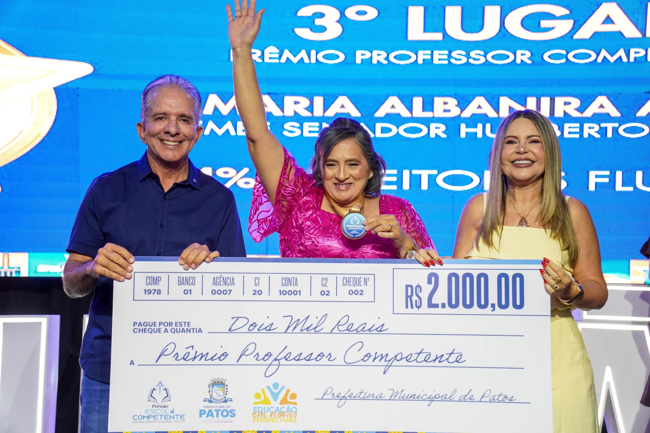 A Prefeitura de Patos, por meio da Secretaria Municipal de Educação, realizou na noite desta quinta-feira (24) a cerimônia de entrega do Prêmio Escola Competente 2025, uma iniciativa que reconhece o desempenho de escolas e professores da Rede Municipal de Ensino com base nos resultados do Sistema de Avaliação da Educação Básica da Paraíba (SIAVE-PB).