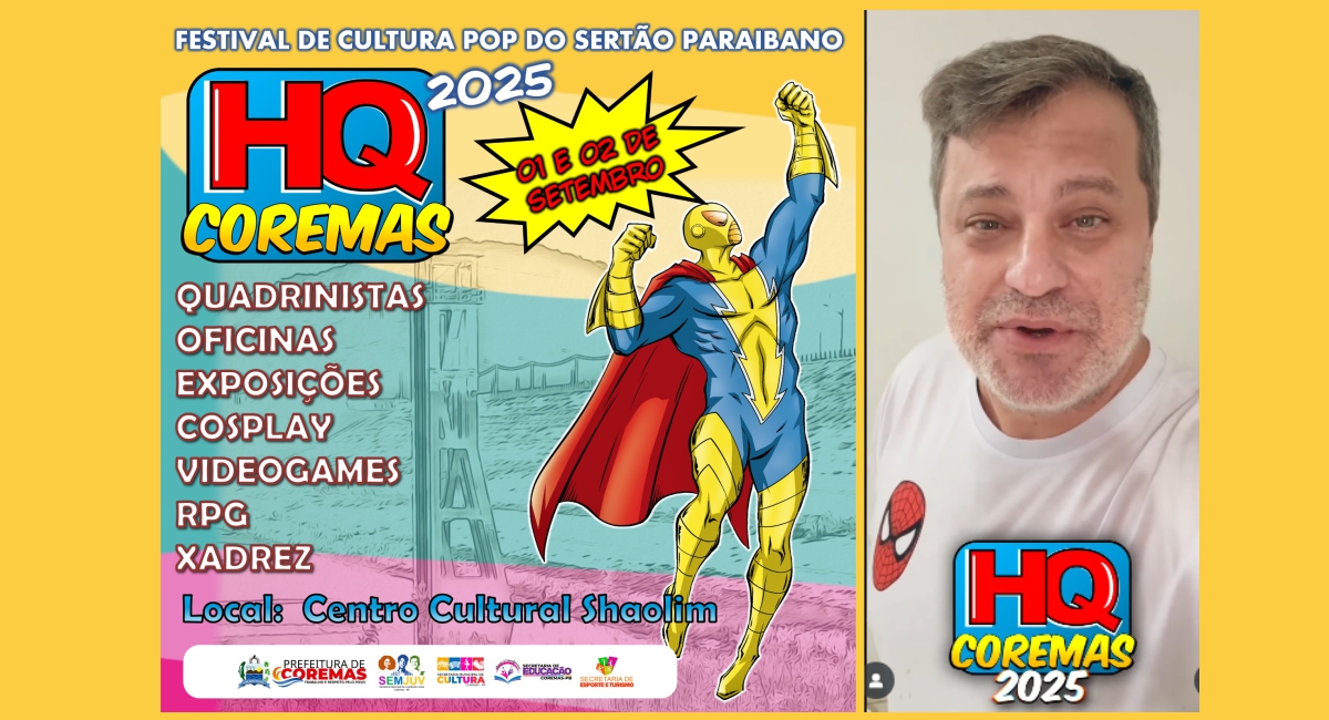 Nos dias 1º e 2 de agosto, a cidade de Coremas – PB será o palco de um dos eventos mais aguardados pela juventude e pelos amantes da cultura pop da região: o HQ Coremas, que acontece no Centro Cultural Shaolim. Reunindo quadrinistas, ilustradores, gamers, cosplayers e fãs de todas as tribos, o festival promete muita diversão e experiências únicas para o público.