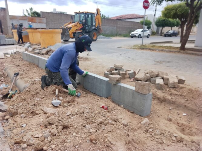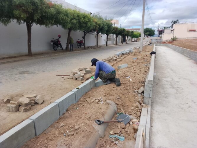A Prefeitura de Patos, por meio da Secretaria de Infraestrutura e Serviços Públicos (SEINFRA), segue avançando com as obras de ligação das ruas Severino Soares e Kelfânio Brito, no bairro Maternidade. A Rua Severino Soares já teve sua pavimentação asfáltica concluída, e os trabalhos agora se concentram na finalização da passagem molhada que interliga as duas vias.